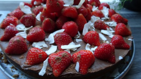 Een heerlijke taart met een brosse en kruimelige bodem wat erg lekker is in combinatie met de romige kokosganache. Versier de taartjes met aardbeien of andere vruchten.